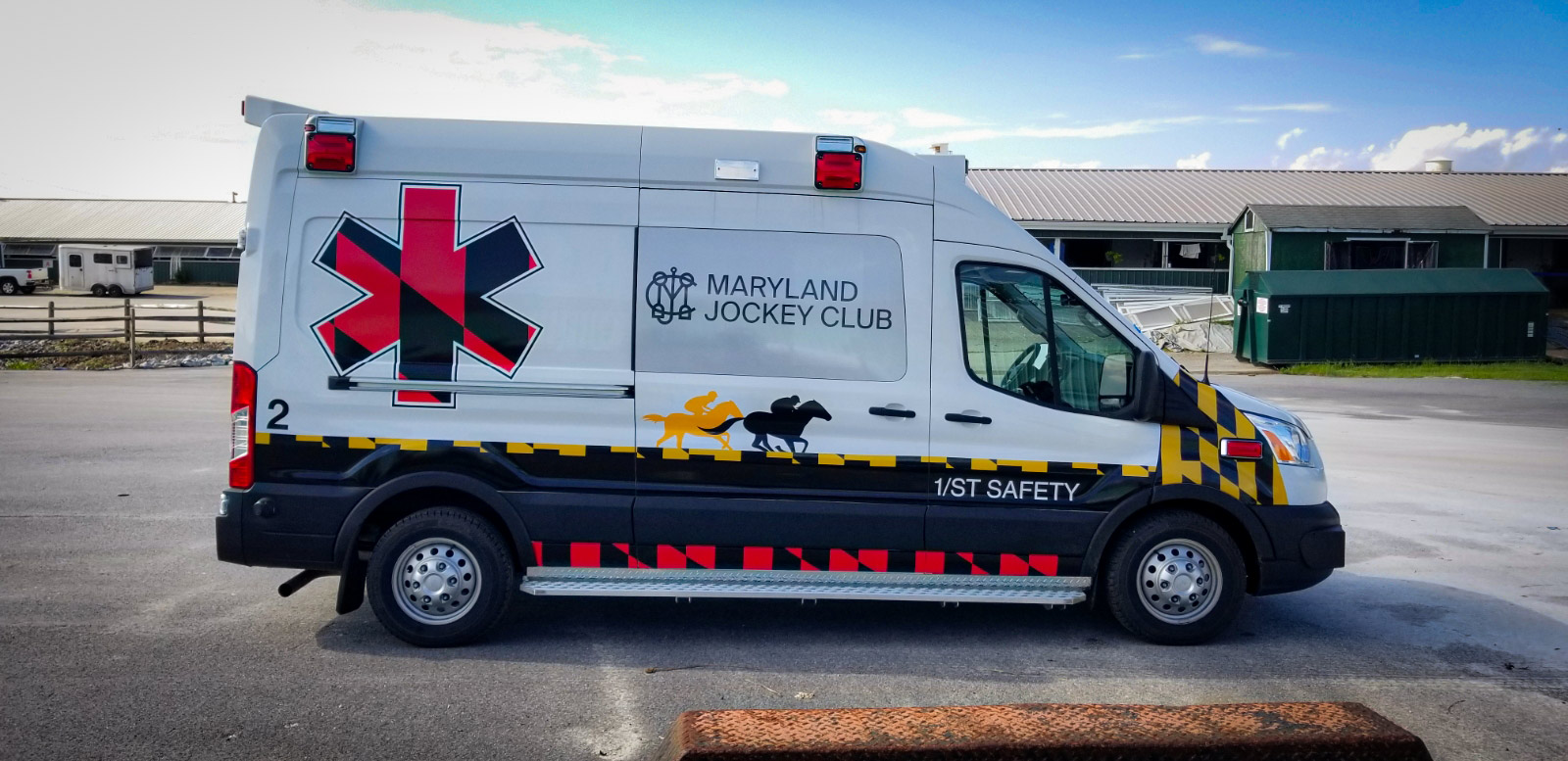 The Maryland Jockey Club needed to update their ambulances for live video coverage. Ultimately this one was selected and the printer did a phenomenal job executing the vinyl print.