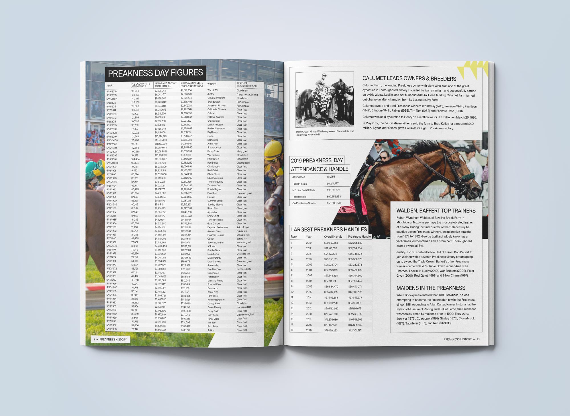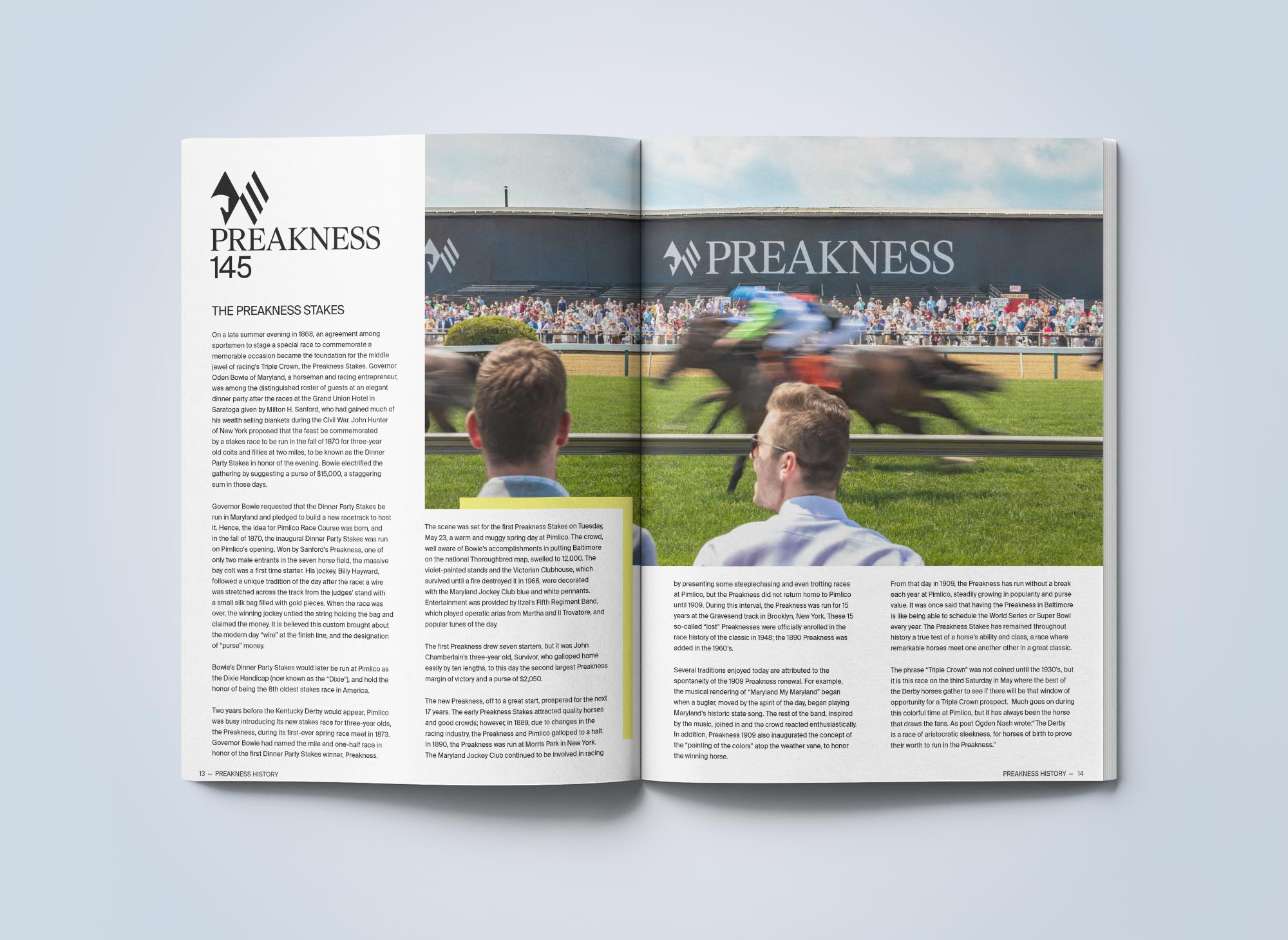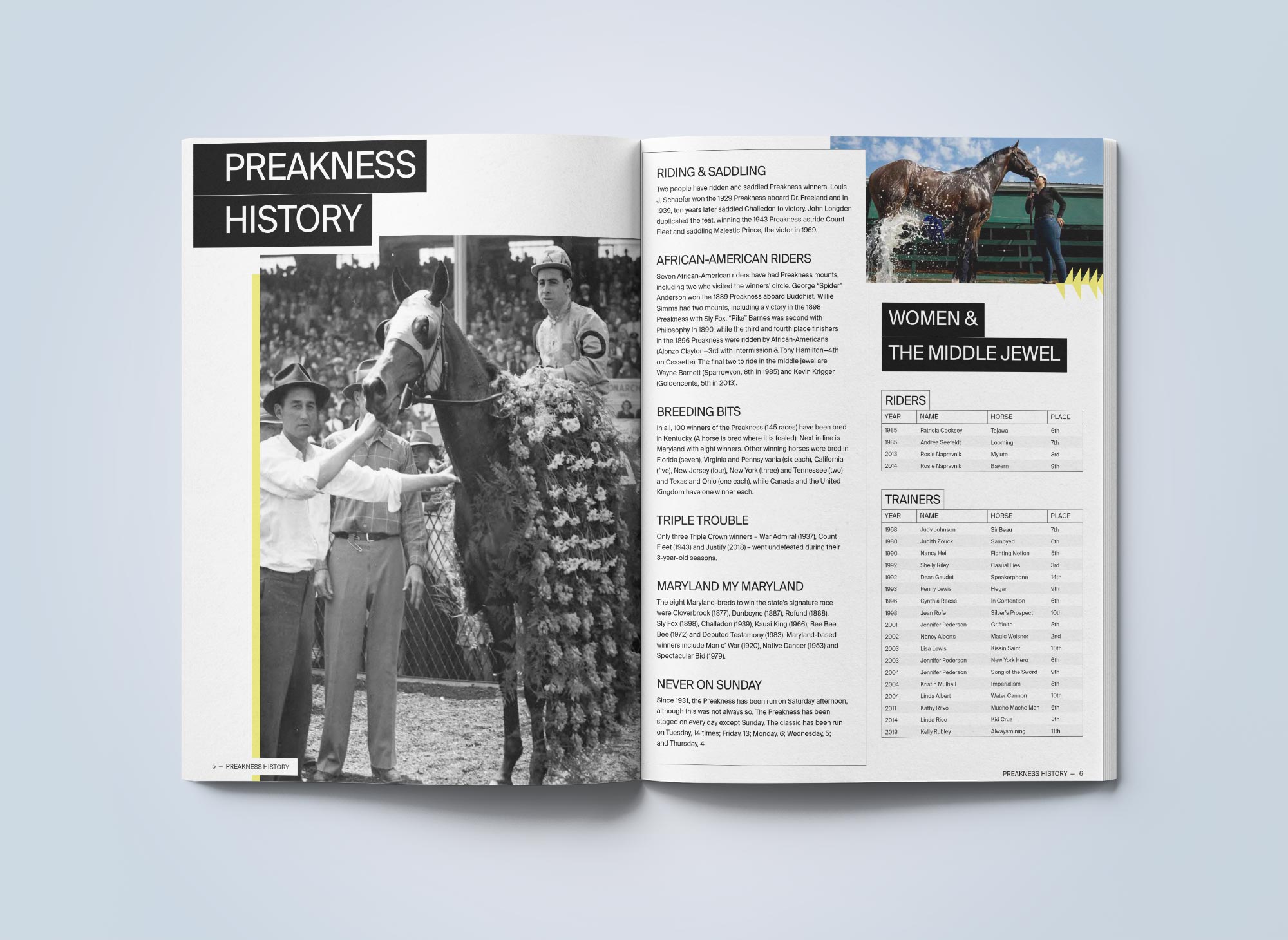 This Preakness 100+ page giant guide needed more than housekeeping, it needed to be brought to the 21st century. Through much time and dedication, every detail on every page was attended to and revamped to represent the sleek new brand.
