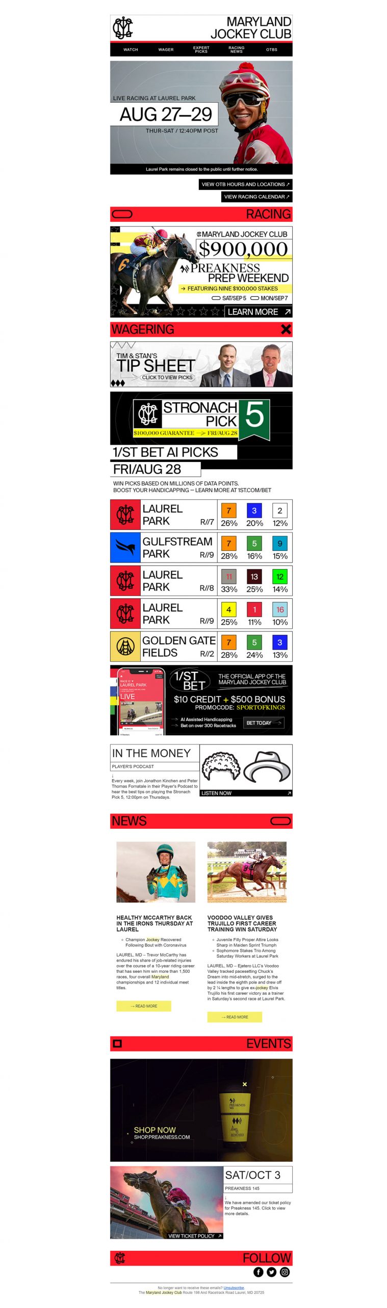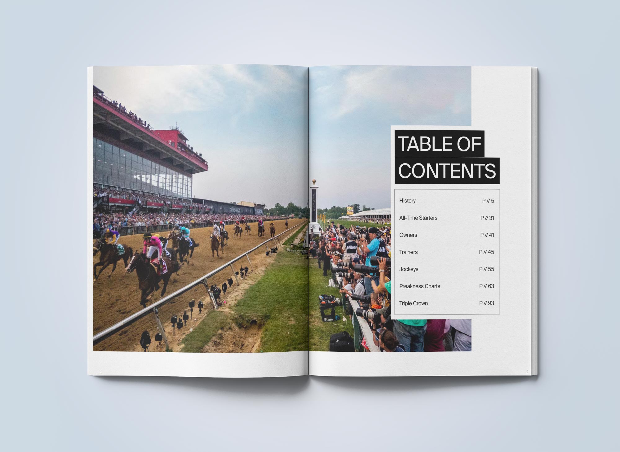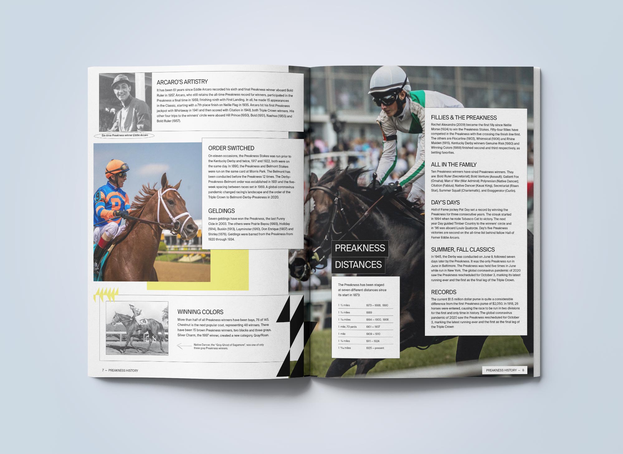 This Preakness 100+ page giant guide needed more than housekeeping, it needed to be brought to the 21st century. Through much time and dedication, every detail on every page was attended to and revamped to represent the sleek new brand.